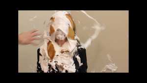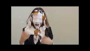 See what happens when the Slophouse secretary, Lindsey, forgets to put cream in the boss's coffee! Shes gets blasted in the face with a cream pie of course! Lindsey's business suit, make up, and hair are ruined as she takes pie after pie to the face. She sputters and squeals in protest, but the pies don't stop. She gets a face full of super thick, blue slime, and is finished off a with a couple more cream pies. The boss fires her, and she hangs her head in disappointment.