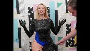 | A very sensual clip featuring a girl in a shiny, black zentai suit. Thick, multi-colored cake batter is tossed and poured on her as she smears the muck all over her body. Starring: | ||||