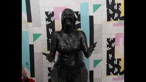 | Cindy is dressed to the nines in the fanciest restaurant in town, but she isn't too pleased with the service. She makes a heated complaint to the server, and gets a glass of wine poured on her head to cool her off.